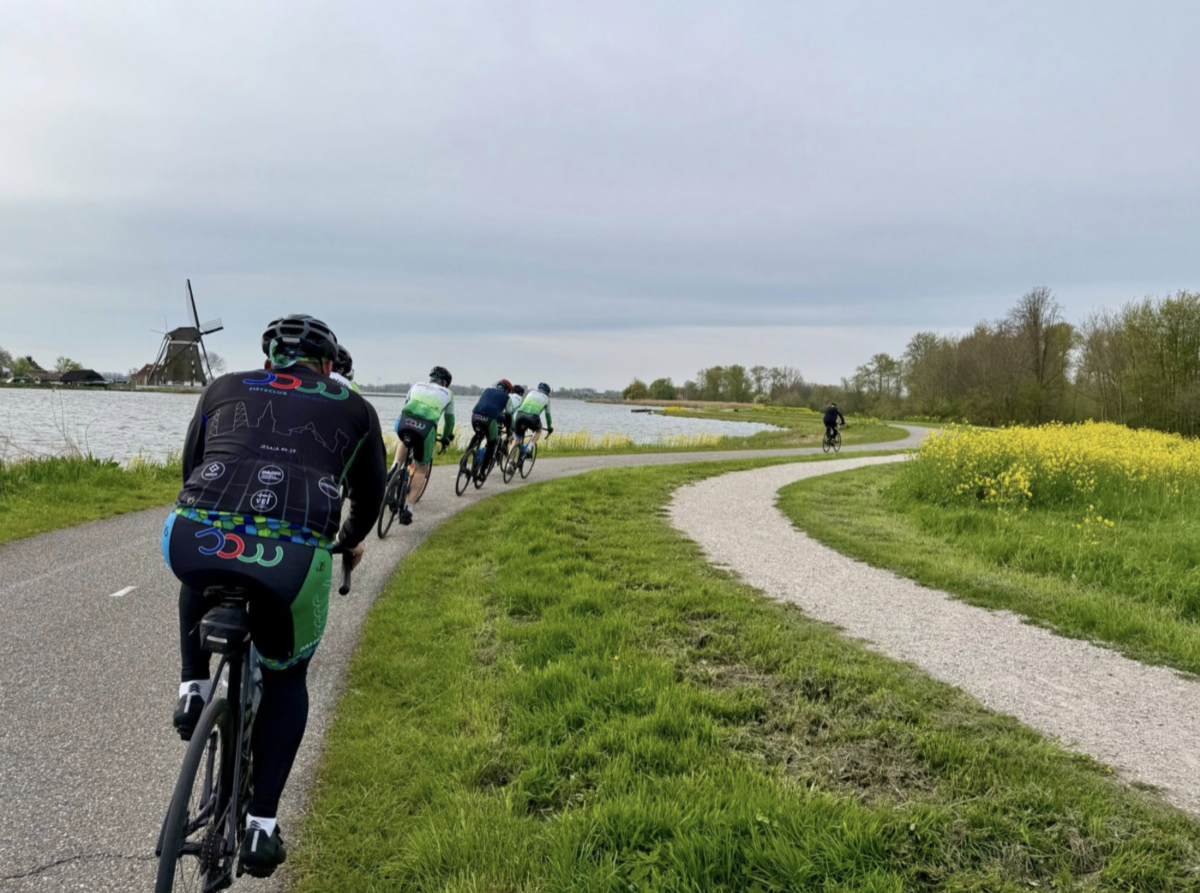 Langs de Rotte laat de landheer wederom op zich wachten, naar later blijkt vanwege een dringend telefoontje van een groenverzorger die een prangende vraag had over de grasmaaimachine. Het valt als grootgrondbezitter ook niet mee dit te combineren met een wielercarriere. Ton dicht het gat op de wachtende SOW-groep achter een ander aangenaam wielergezelschap waar het naar zijn zeggen prima toeven was.