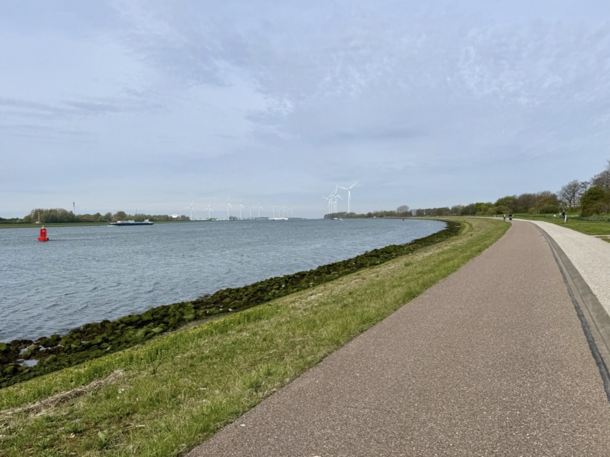 Het is een route over nagenoeg louter fietspaden, heerlijk. We komen langs de Nieuwe Waterweg te rijden, waar we door de wind vooruit geblazen moeiteloos tot diep in de dertig koersen. Het gaat zo voorspoedig dat de routeleiders de navigatie vergeten en rechtdoor stuiven waar toch rechtsaf gegaan moet worden. Een achtervolging op de rest volgt.