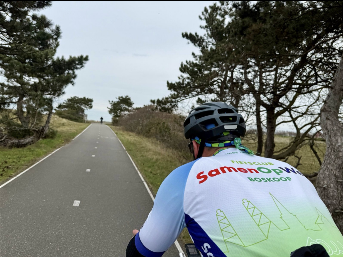 Na de lunch stappen we weer op de fiets, niet wetend dat de vaart er direct op zou gaan. Het merendeel van de groep had dezelfde ambitie en onderhield door het duingebied een verschroeiend tempo. Schuilend achter elkaars rug en schouders weerstonden we de wind die ons in de flanken raakte. Ton schudde nog eens zijn hoofd en liet het gejakker voor wat het waard was. In Kijkduin draaiden we de zee de rug toe en rijden we achter Delft richting de A12. We helpen op barmhartige wijze een onbekende collegafietser aan wat Boskoopse lucht, een oponthoud dat door de meesten als heel welkom wordt ervaren.