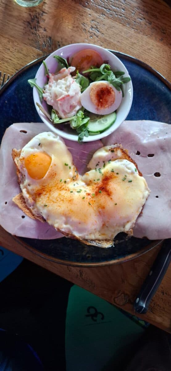 In Hoek van Holland steken we op, dit keer in een andere tent als in de vorige editie. Maar het is er goed eten, Koen krijgt er met een omelet in hartvorm zelfs een liefdesverklaring voorgeschoteld. Ons bereikt er het bericht dat Thijs onderweg zal gaan om ons tegemoet te rijden. We zouden hem verderop de middag inderdaad treffen.